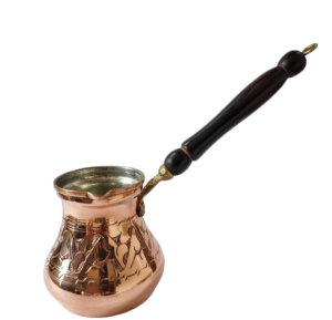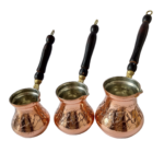 Cafeteras turcas de cobre grueso grabado, hechas y martilladas a mano por artesanos turcos.